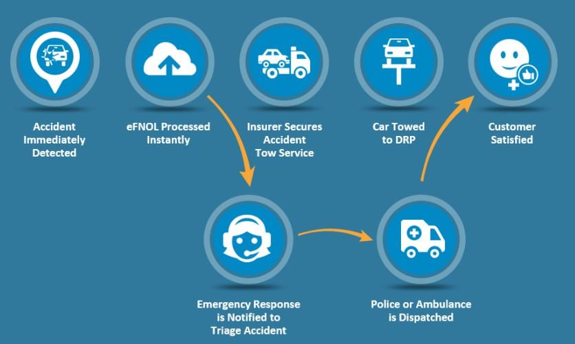 Of course, the trick to making all of this work is the ability to enable eFNOL at the scene of the accident. This can be achieved through a couple of methods: 1) educating policyholders to call their carriers at the scene, or 2) leveraging telematics technology.